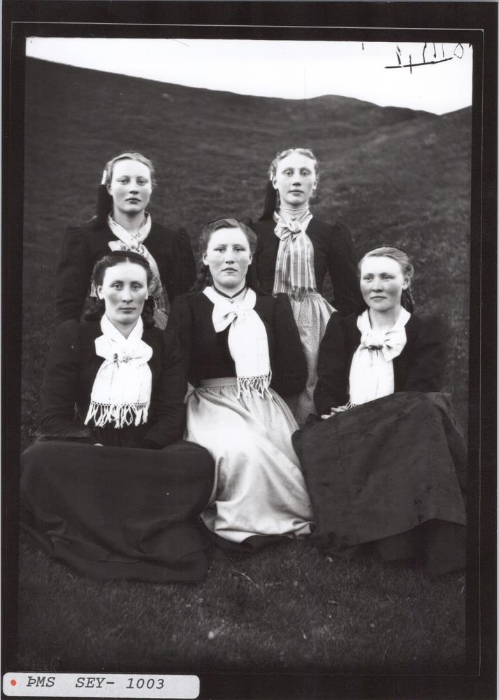 Systur frá Deildartungu í Reykholtsdal, Hannesdætur. Neðri röð f.v. Ástríður Hannesdóttir, Guðrún Þuríður Hannesdóttir, Helga Hannesdóttir. Efri röð f.v. Vigdís Hannesdóttir, Hallfríður Hannesdóttir.