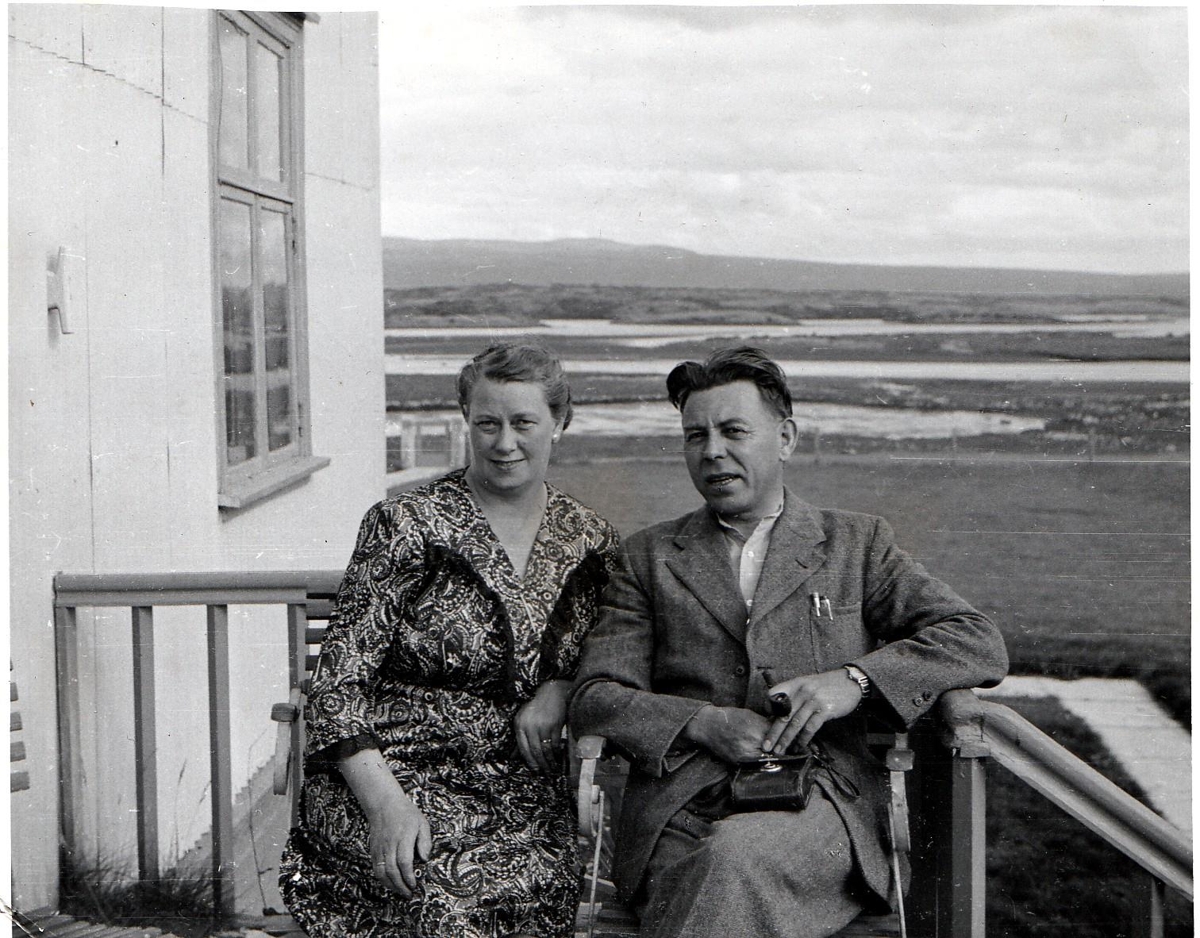 Emil Jónsson og Guðfinna Sigurðardóttir við ráðherrabústaðinn á Þingvöllum