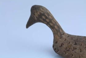 Æðarfugl smíðaður af Eymundi Jónssyni handa Höskuldi Björnssyni, sem gaf hana Jóhanni. Undir fuglinum er búið að skera út tölustafinn 4 og bókstafinn H.