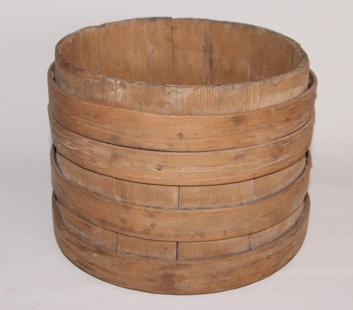 Skyrkolla úr tré, lítil. H. 15 cm. Þv. 19 cm. Á henni eru fjórar gjarðir, samsett úr 14 stöfum, sennilega færri í upphafi, hafa klofnað. Hún er trénegld og splæst saman. Orðin frekar laus í sér en vel með farin.