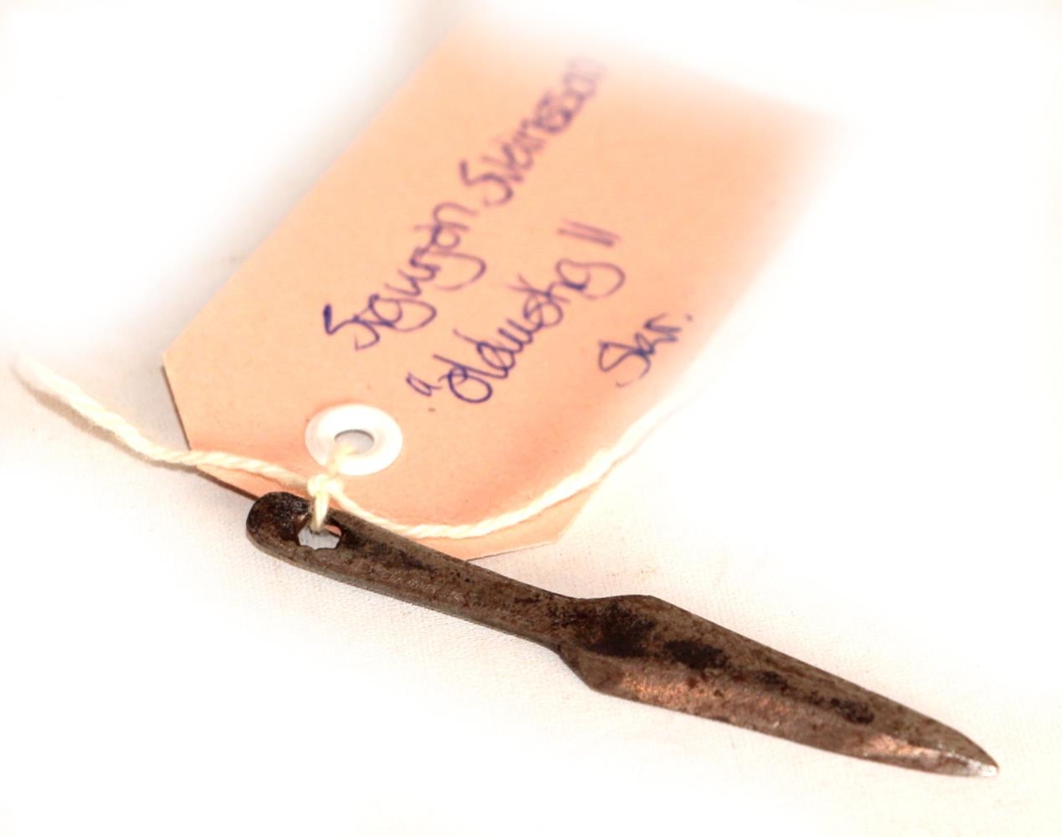 Þvengjanál úr gömlum járnnagla. L. 6,1 cm. Br. 0,9 cm. Augað er hringlaga.