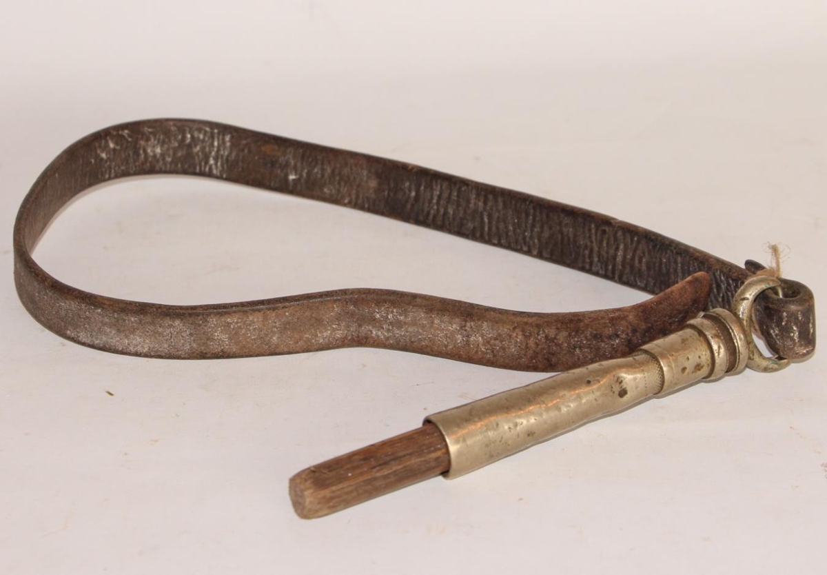 Svipa úr viði, silfri og leðurreim. L. 67 cm, frekar grönn. Hefur brotnað rétt neðan við endann á silfrinu. Leðurreimin er þrædd og bundin saman, ekki hnoðuð. Silfrið er slitið (800s), með punktamynstri sem er marið í.