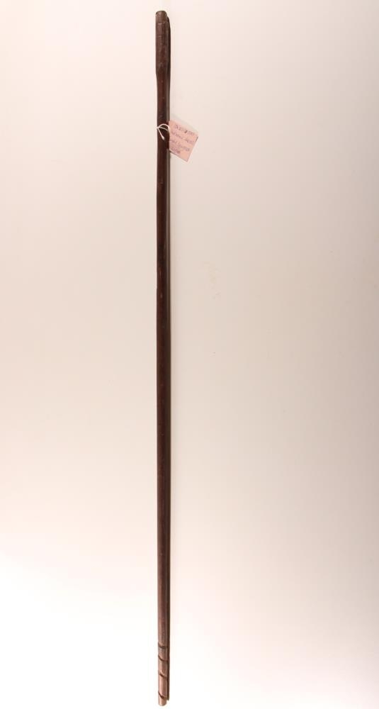 Hlaðstokkur úr tré. L. 93,5 cm. Þv. 1,6 cm efst en grennist eftir 8 cm í sirka 1,3 cm. Handtálgað. Neðst er skorin í hann lína sem gengur upp í hringi, 10 cm.