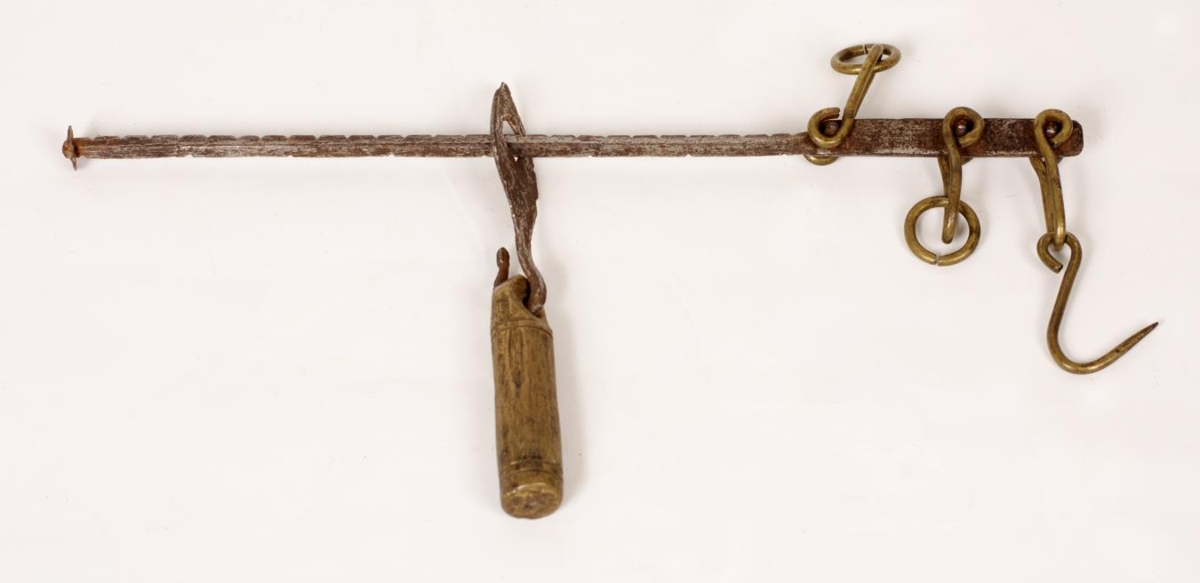 BSk-5101/2013-161. Reisla úr járni og messing. L. 28,5 cm. Krókur, lykkjur og lóð eru úr messing. Reislan er stutt og létt. Gefandi er Leó Jónasson, Svanavatni í Hegranesi, en hún var smíðuð af Jónasi Jónssyni (1840-1927) bónda í Hróarsdal í Hegranesi. Jónas smíðaði reisluna fyrir konu sína, Lilju Jónsdóttur (1872-1935) frá Syðstu-Grund í Blönduhlíð, sem kökuvigt, fyrir bakstur (MKR 656).