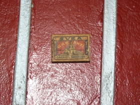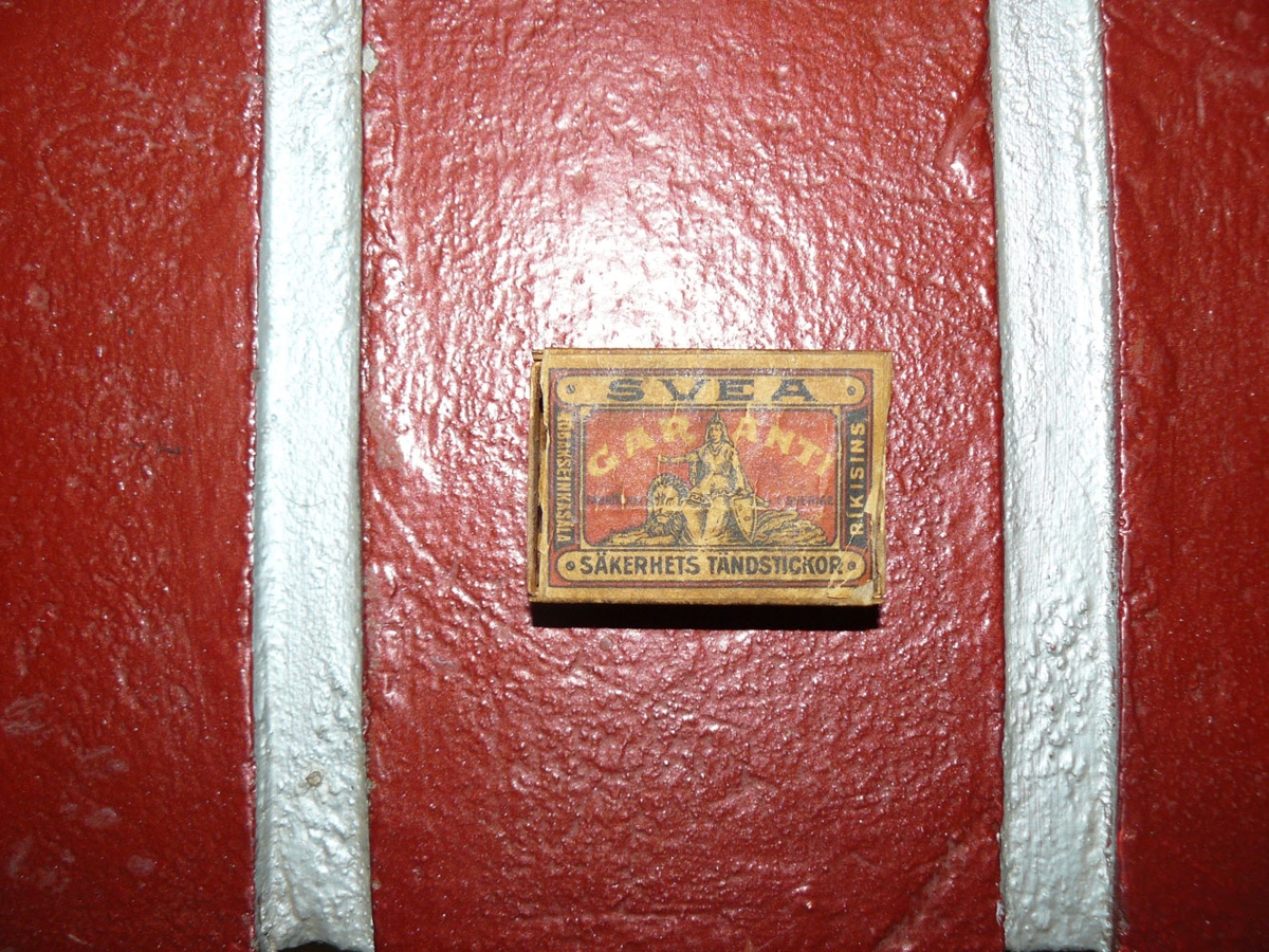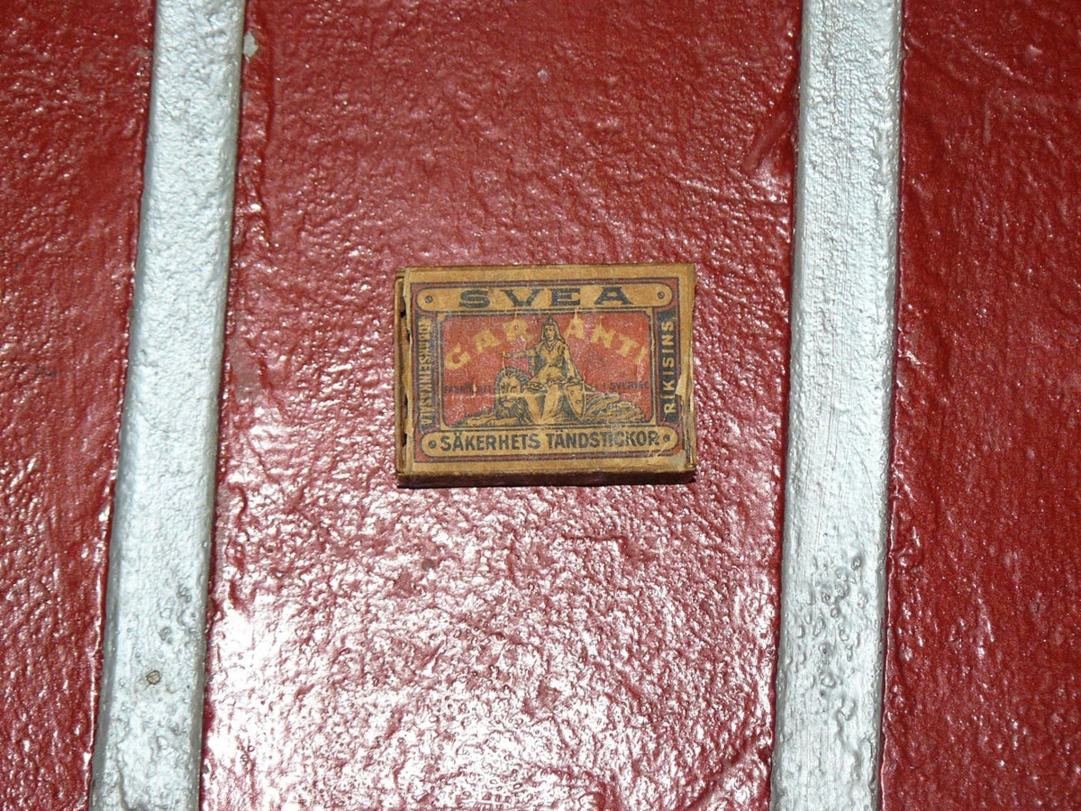 Eldspítustokkur merktur Tóbakseinkasala ríkisins með auglýsingu á Une. Munkfell bátavélum. Gefandi: Hreinn Guðbjartsson (1938 - 2022) lengi búsettur í Garðinum.