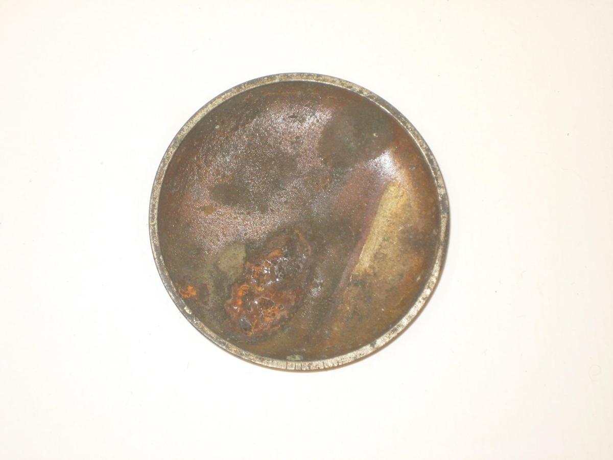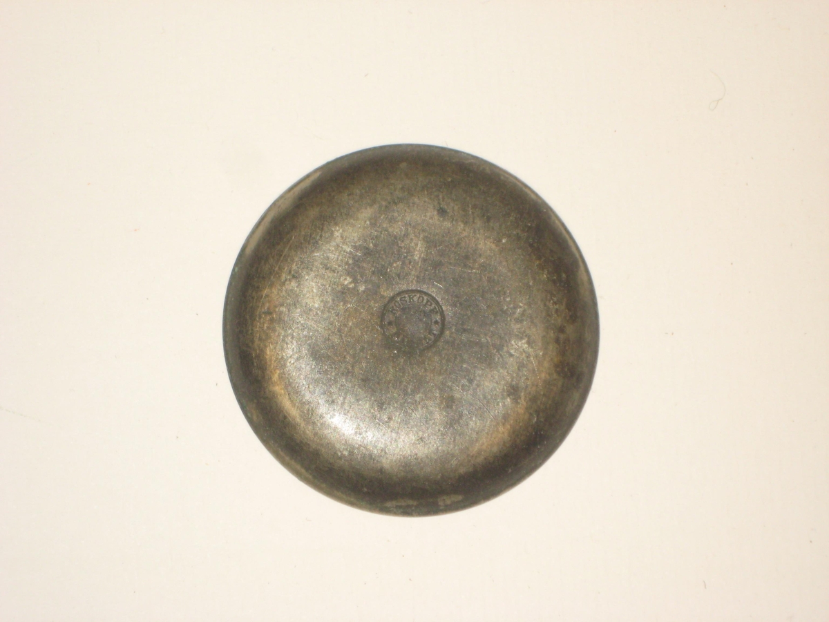 Hringlaga skífa úr málmi, sem gæti hafa verið lok eða bak á úri. Í miðju skífunnar stendur "ROSKOPF PATENT", sem er svissnesk framleiðsla á úrum.
