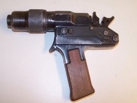 Kindabyssa sem notuð var í Sláturhúsi Kaupfélags Þingeyinga, frá 1962 þar til loftbyssur tóku við 1988 eða 1989. Úr málmi með tréskafti, öðru meginn á byssunni er númerið 78140, hinu meginn stendur:
