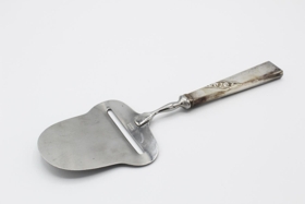 Merkt sama númeri: Ostaskeri af Raadvad gerð. Haldfang er úr sterling silfri með flóru þema en sjálfur skerinn eða tönnin er úr ryðfríu stáli.