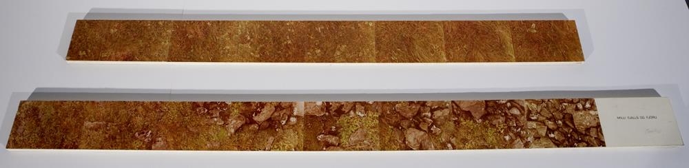 Verkið er upprunalega ca. 20 metrar að lengd og samanstendur af ljósmyndum (10x15 sm.), teknar í beina línu frá fjöruborði uppí fjallsrætur.Ljósmyndirnar eru límdar í réttri röð á spónarplöturenninga jafnbreiða og myndirnar. Verkið er fest á á vegg með vinkilskrúfum.Upprunalega var það sýnt í Gallerí SÚM, fest upp í tveimur röðum (mætti vera ein röð ef veggpláss leyfir).Verkið á að sýna hvernig gróðurfarið breytist frá fjöruborði; þang hrúðurkarlar o.þ.h., uppí mosa og skófir upp við fjallsrætur og allt sem vex þar á milli.Einnig var gerður skúlptúr um sama leyti, sýndur á Myndhöggvarafélagssýningu á Kjarvalsstöðum ca.1978, með sömu hugmynd að leiðarljósi. Steinar, áþekkir að stærð (15 stk.),eru tíndir með jöfnu millibili frá fjöruborði uppí fjallsrætur og raðað í beina línu á gólf, sýna á sama hátt breytinguna á gróðurfari með ávöxnum gróðri sínum frá fjöruborði uppí fjallsrætur, frá þangi og hrúðurkörlum uppí mosa og skófir.