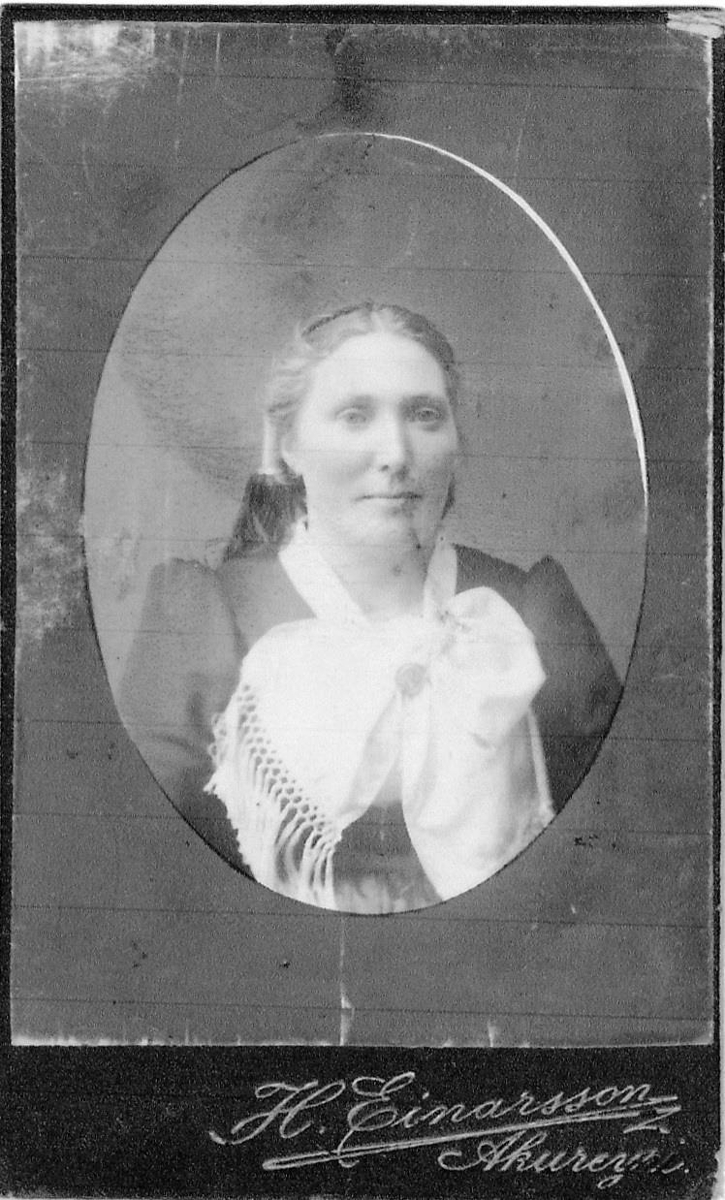 Kona á upphlut með skotthúfu, á að giska 30-45 ára. Þetta er Ingibjörg Jónsdóttir, fædd 28. ágúst 1874 í Skálmardal, A-Barðastrandarsýslu. Hún er skráð sem heimildarmaður í þjóðháttasafni Þjóðminjasafns Íslands.