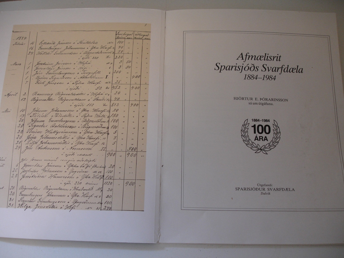 Title: Sparisjóður Svarfdæla Dalvík 100 ára starf 1884-1984