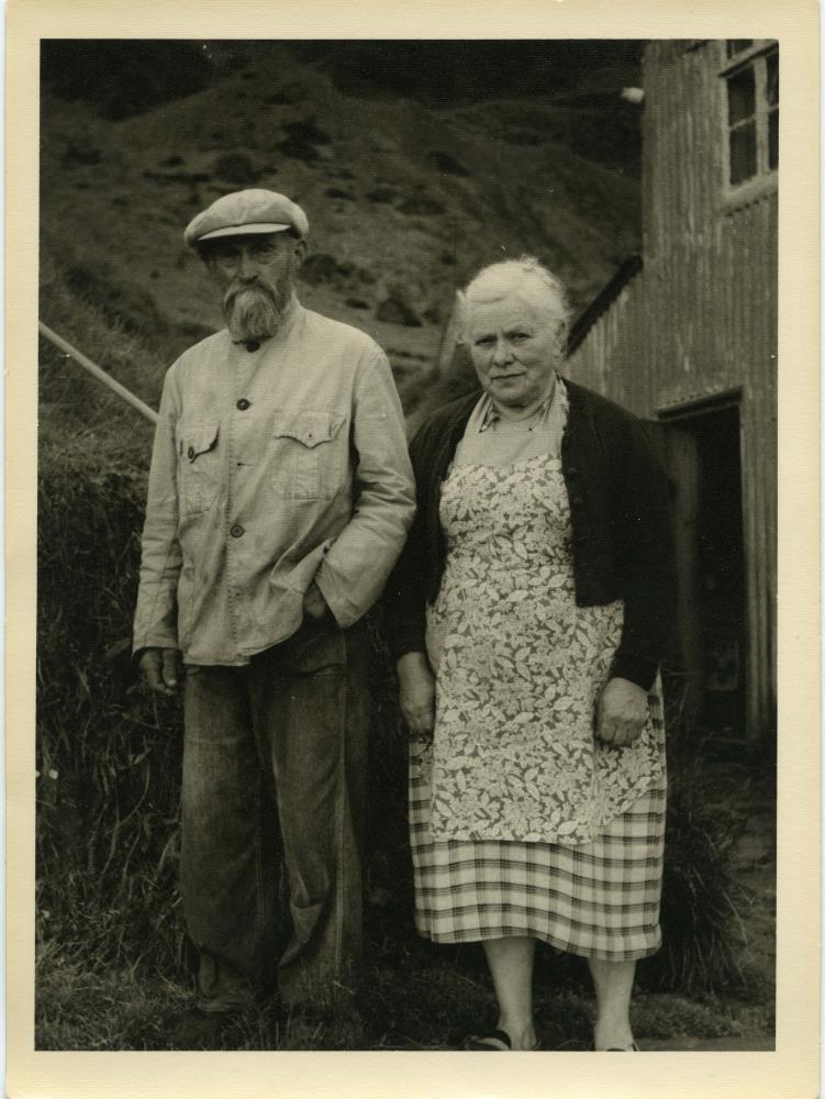 Núpsstaður. Hannes Jónsson bóndi og Þóranna Þórarinsdóttir kona hans . Portrettmyndir af þeim sitt í hvoru lagi og saman teknar utan dyra. Myndir af samfylgdarfólki Alfreðs með þeim og má þar þekkja Magnús Guðjónsson prest. Hugsanlega tengdaforeldrar Alfreðs. 1957. Ellefu myndir.