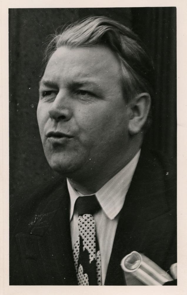 Lækjartorg. Hátíðarhöld 1. maí. Helgi Hannesson forseti ASÍ (KÓ, EL)