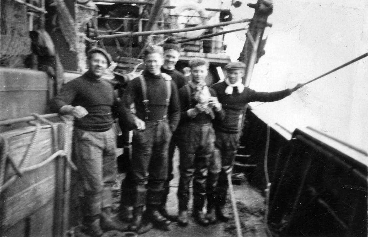 Skipverjar á þilfari síðutogarans Svalbaks EA 2.
