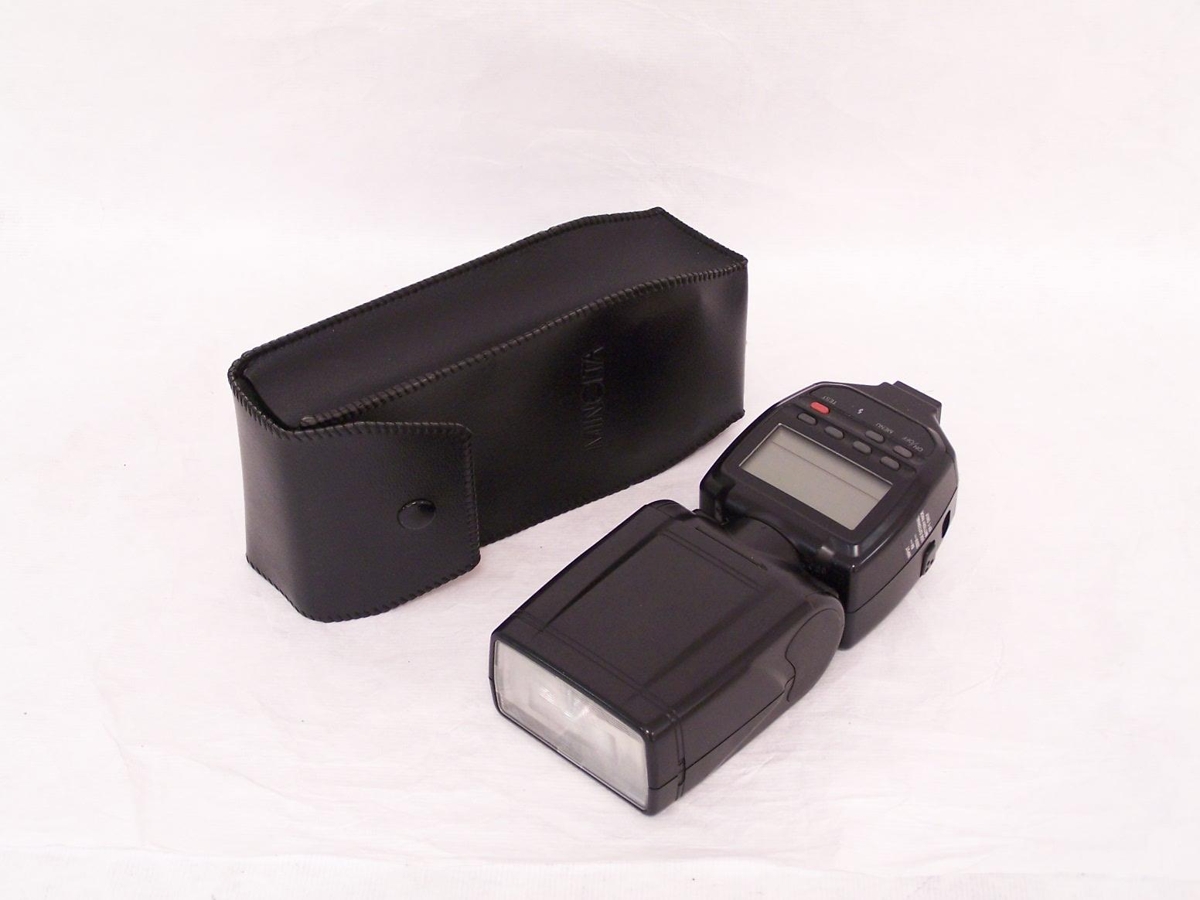 Svart flass með ljósmæli. Teg. Minolta Program 5200i - í svartri sértösku. Hlutinn gerði Minolta. Sjá Minolta myndavél sem þetta tilheyrir nr. 4459