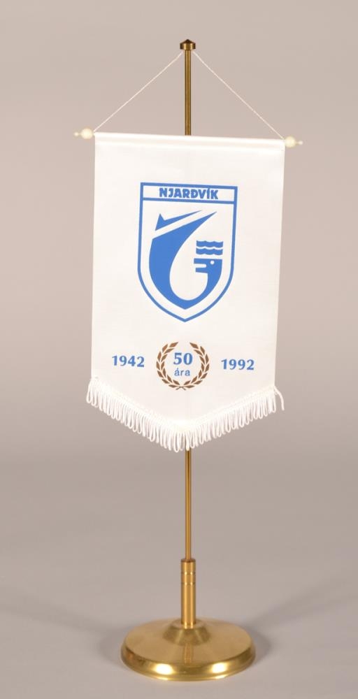 Borðfáni á stöng með merki Njarðvíkur 50 ára
