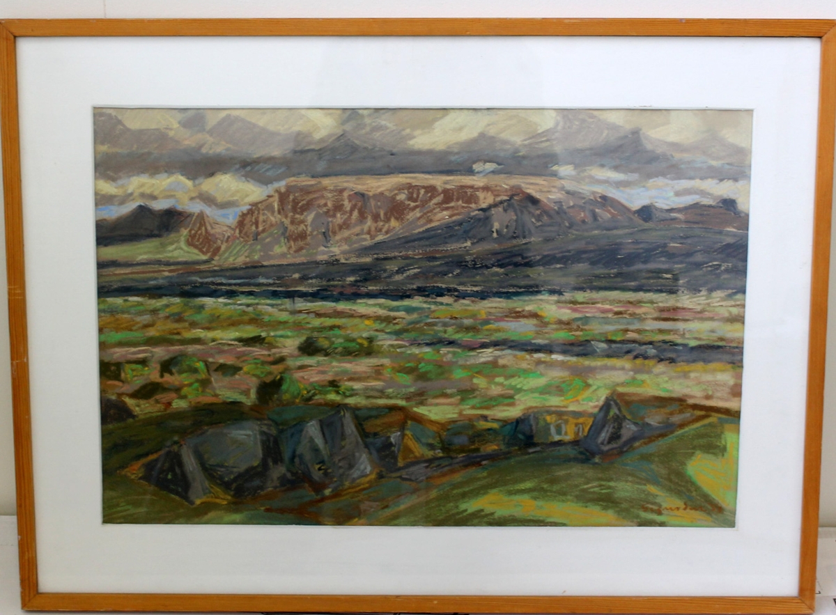 Málverk eftir listamanninn Sigurð Sigurðsson (1916 - 1996). Þetta verk er eitt af hundrað listaverkum sem Hallsteinn Sveinsson (1903 - 1995) gaf Listasafni Borgarness árið 1971.