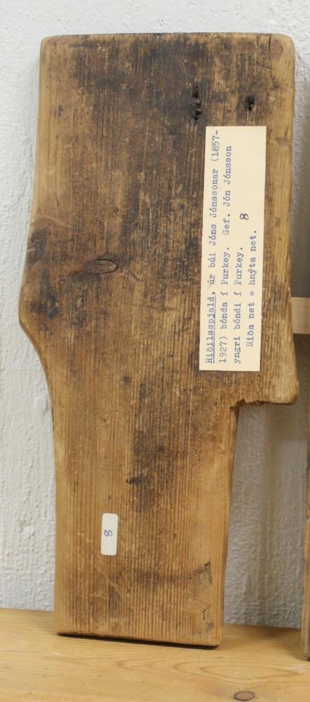 Netariðilsspjald fyrir rauðmaga- og grásleppunet. Sverari endinn er fyrir grásleppunet.