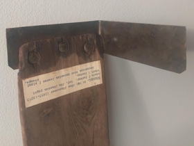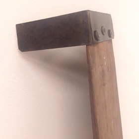 Heildarlengd er 106 cm. Blaðið er 13,5 x 13,5 sm, hæðin á því er 5 cm. Skaftið er 4,8 cm breitt og neðar 13 cm breitt.