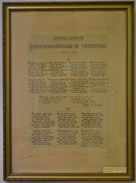 Ljóð Stefáns frá Hvítadal og Jóhannesar úr Kötlum frá vígslu Húsmæðraskólans á Staðarfelli 29. júní 1929. Skrauturitað af S.E. í apríl 1933.