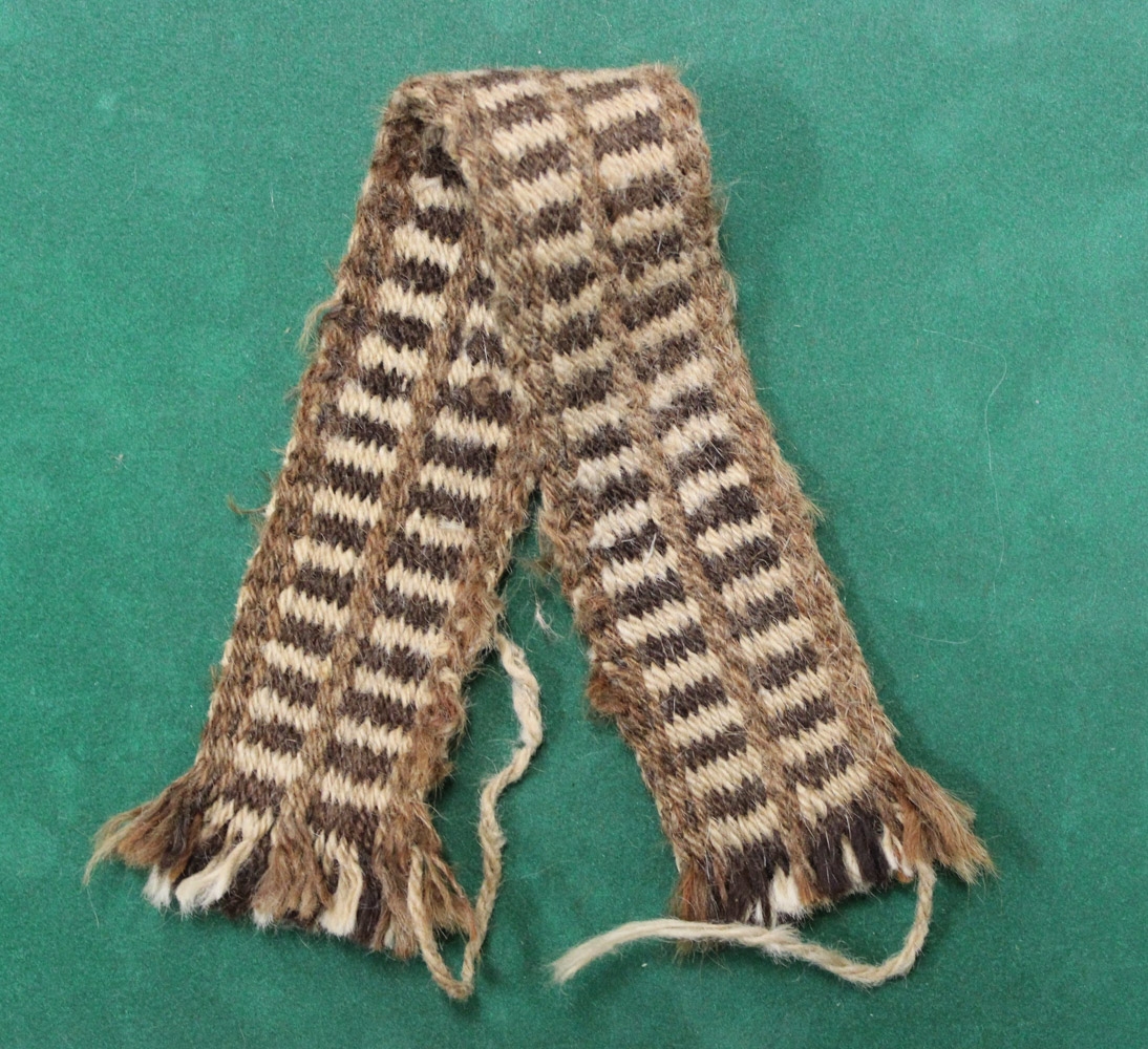 Bútur af reiðtygjagjörð ofið í gjarðavefstól af Gesti Magnússyni bónda á Ormsstöðum.