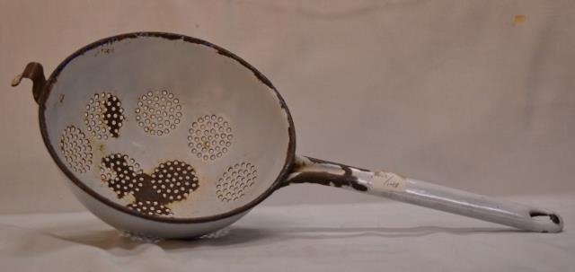 Elimerað hvítt sigti úr búi Elínbetar Jónsdóttur í Innri-Fagradal, Saurbæ, Dalasýslu.