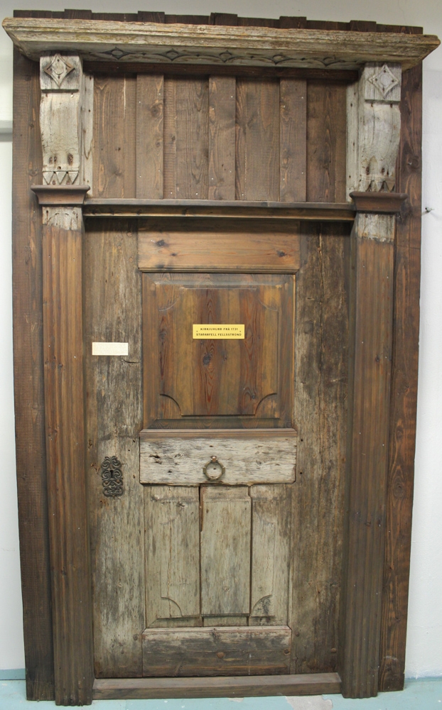 Hurðin var fyrst fyrir torfkirkju er byggð var 1731 og stóð til 1803.