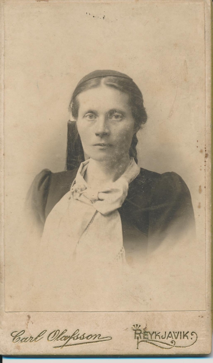 Ljósmynd úr fórum Snorra Ólafssonar frá Selfossi. Á myndinni er Vilborg Hannesdóttir frá Skipum, kona Jóns Sturlaugssonar, Hafnsögumanns frá Stokkseyri.