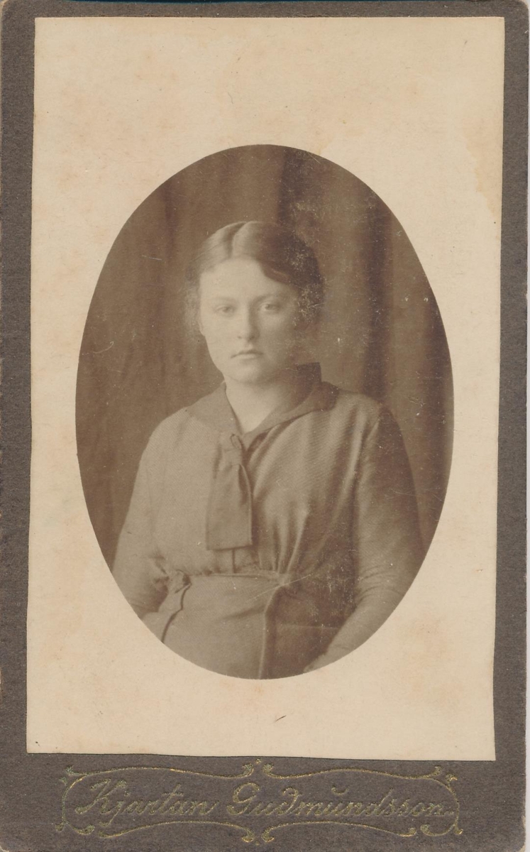Ljósmynd úr fórum Snorra Ólafssonar frá Selfossi. Á myndinni er Gæflaug Eyjólfsdóttir frá Skipagerði á Stokkseyri, síðar á Vesturgötu 59, Reykjavík. Hún ólst upp í Ranakoti.