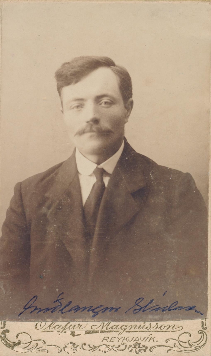 Ljósmynd úr fórum Snorra Ólafssonar frá Selfossi. Á myndinni er Guðlaugur Skúlason (1882-1965), þá í Símonarhúsi á Stokkseyri. Síðar í Reykjavík.