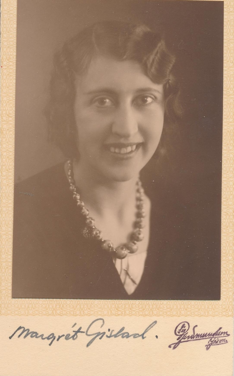 Ljósmynd úr fórum Snorra Ólafssonar frá Selfossi. Á myndinni er Margrét Gísladóttir frá Hoftúni, organisti og handavinnukennari.
