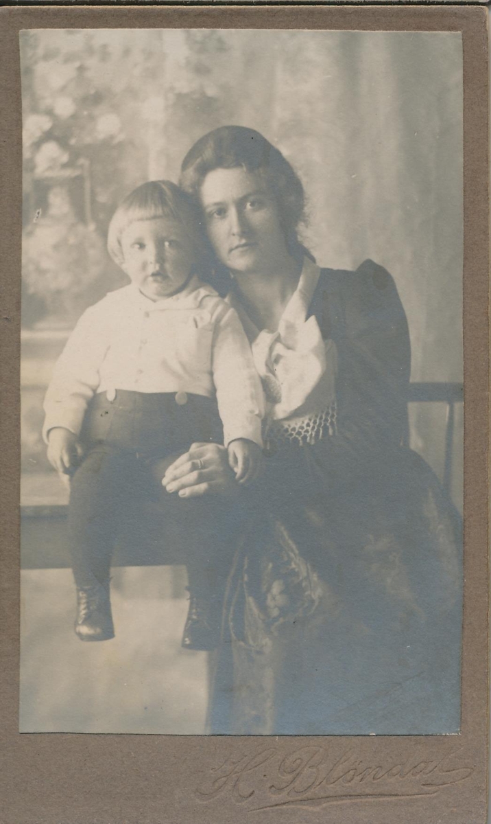 Ljósmynd úr fórum Snorra Ólafssonar frá Selfossi. Á myndinni er Gjaflaug Eyjólfsdóttir frá Skipagerði, síðar Vesturgötu 59 Reykjavík. Uppalin í Ranakoti, dóttir Eyjólfs Bjarnasonar. Á myndinni er einnig Páll Þórir Jóhannsson, sonur hennar.