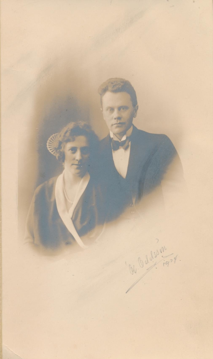 Ljósmynd úr fórum Snorra Ólafssonar frá Selfossi. Á myndinni eru hjóninn Hilmar Stefánsson, bankastjóri og Margrét Jónsdóttir frá Móhúsum Vestari á Stokkseyri.