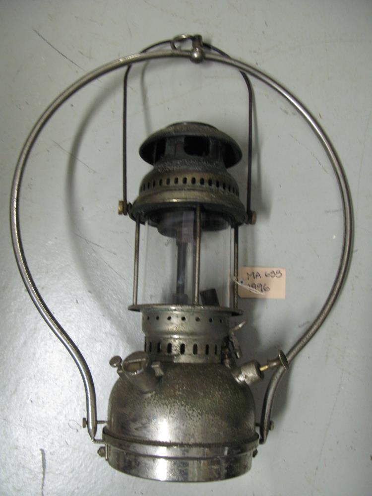 Silfurlituð lugt af gerðinni Standard. Haldið kemur í boga umhverfis og efst er hringur til að hengja lugtina upp á. Úr búi móður og móðursystkina gefenda.