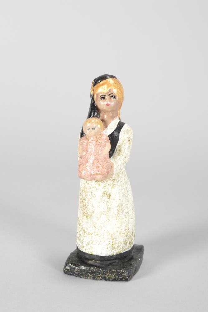 Lítil (miniature) stytta af konu í upphlut með barn í fanginu