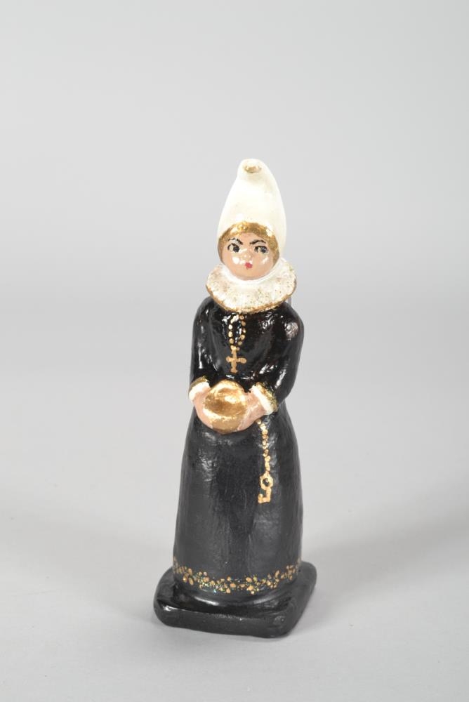 Lítil (miniature) stytta af konu í svörtum faldbúningi með bók í hönd