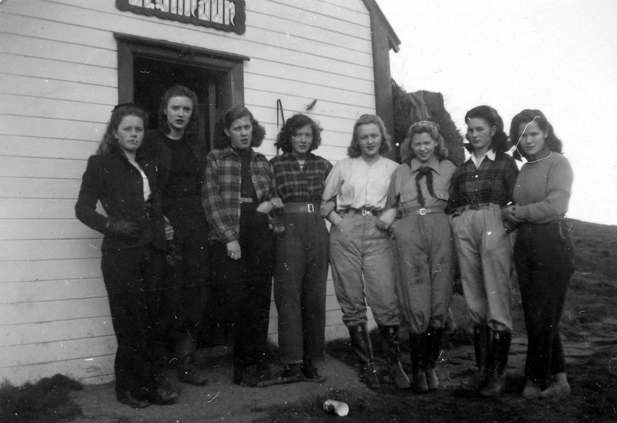 Frá hægri; María Pálsdóttir, Hervör Ásgrímsdóttir, ? Regína Bjarnadóttir frá Húsavík, ?, ?, ? ?.