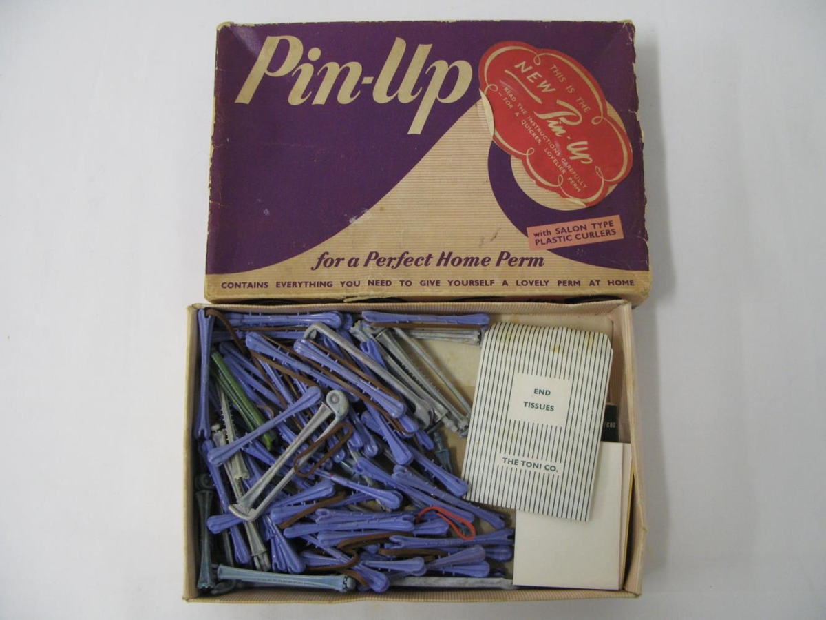 Tvær gerðir af permanettrúllum og blöð til að leggja á milli hárs og rúllu. Uppbygging hlutanna er að mestu sú sama, báðar tegundir ætlaðar til að vefja utan um hárið með þar til gerðum pappír á milli vafninga. Munurinn á milli þessara tveggja hluta er að annar er með teygju til að halda hárinu upprúlluðu en hinn er með áfastri spennu sem spennt er yfir hárið þegar búið er að rúlla því utan um rúlluna. Á kassanum stendur "Pin-up for a perfect home perm. Contains everything you need to give yourself a lovely perm at home."