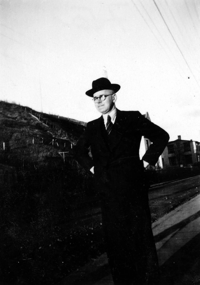 Páll sýsluskrifari á gangi í innbænum.