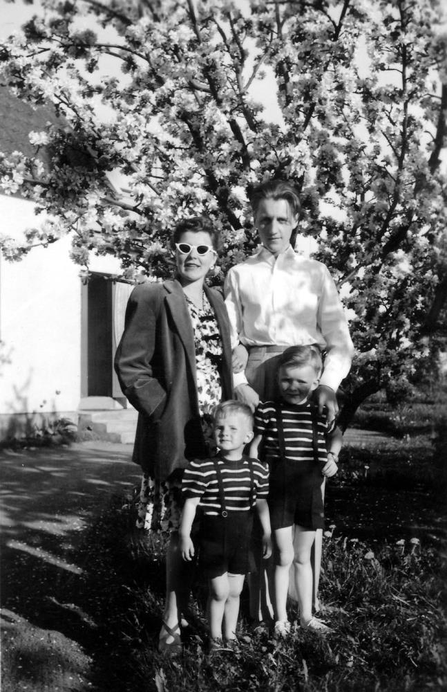 Systkinin Jón Árni Jónsson (f.d. 1925) og María Jónsdóttir Ström (f.d. 1919) og synir Maríu, Jan Sröm og Per Sröm. Myndin er tekin í Svíþjóð.