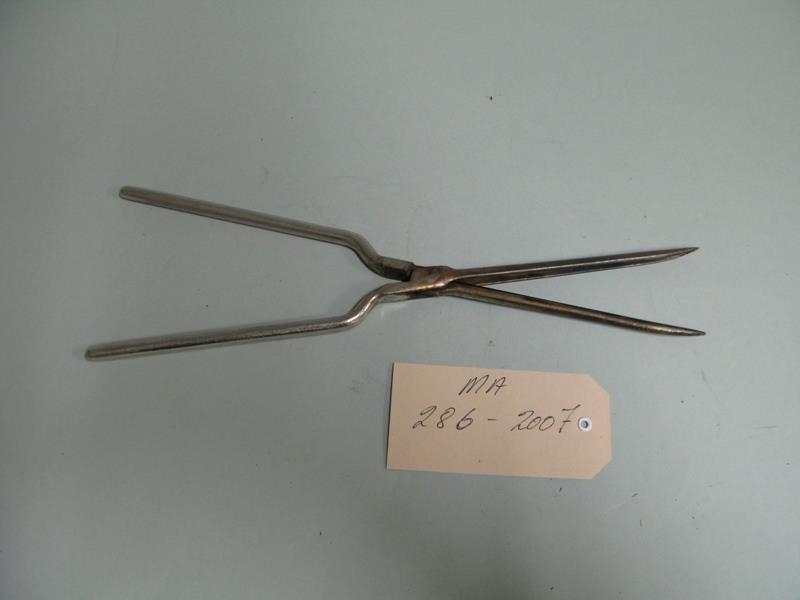 Ondúleringarjárn, krullujárn, var hitað og hárið vafið uppá teinana. Var í eigu Jóhönnu Guðmundsdóttur, aðalbókara frá Seyðisfirði