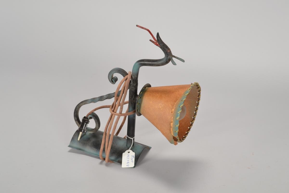 Vegglampi úr messing; eins og eldspúandi dreki í laginu