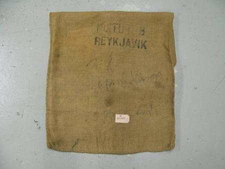 Brúnn strigapoki, ógreinilega merktur, en e.t.v. Stendur: "Mixture B Reykjavík" og svo er handskrifað "KFV" sem stendur fyrir Kaupfélag Vopnfirðinga, Vopnafirði.