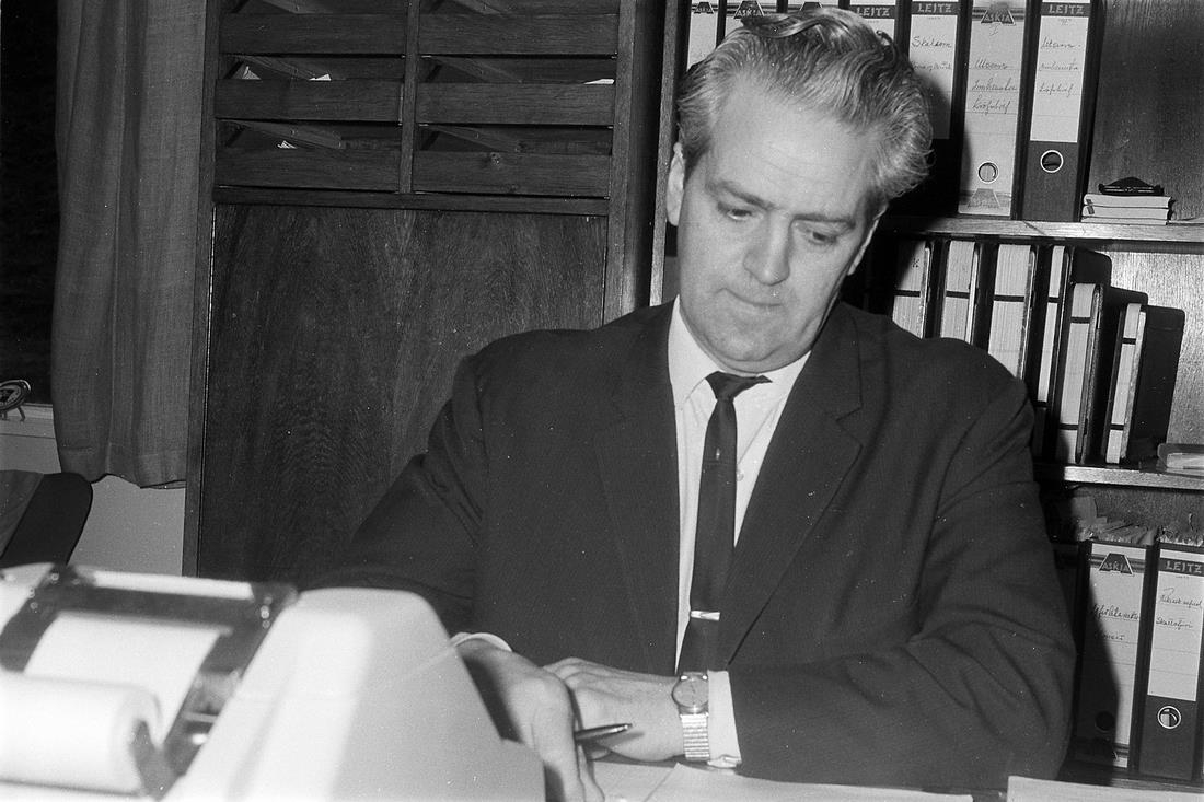 Vesturlandsferð, apríl 1969. Karlmaður situr á skrifstofu.