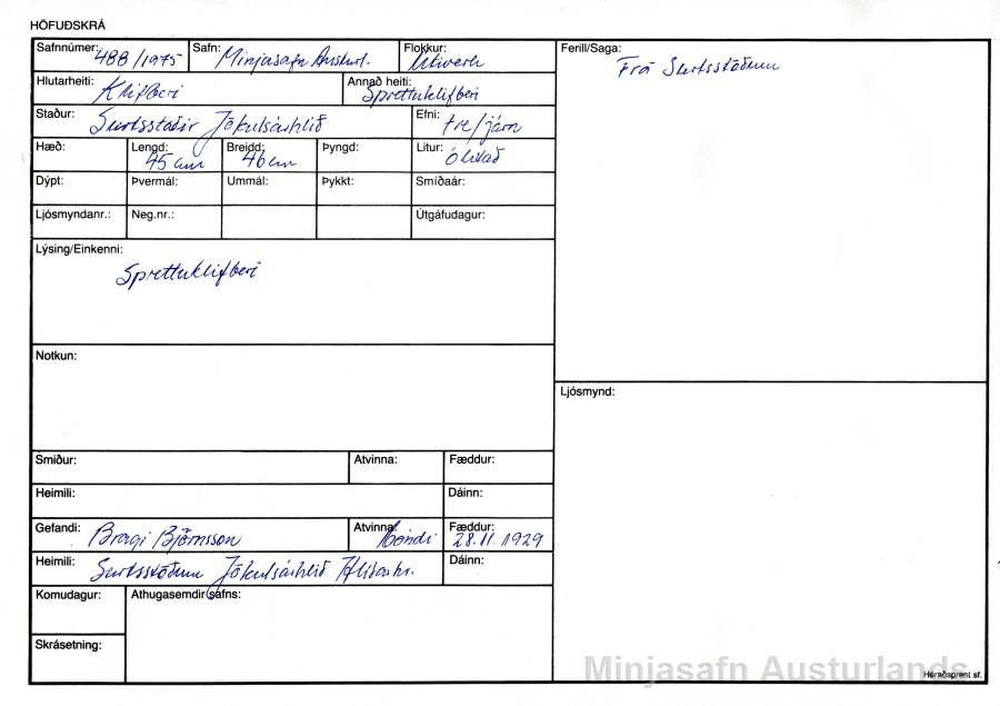 Klyfberi með hleypiklökkum. Frá Surtsstöðum. Annað heiti: Sprettuklyfberi.