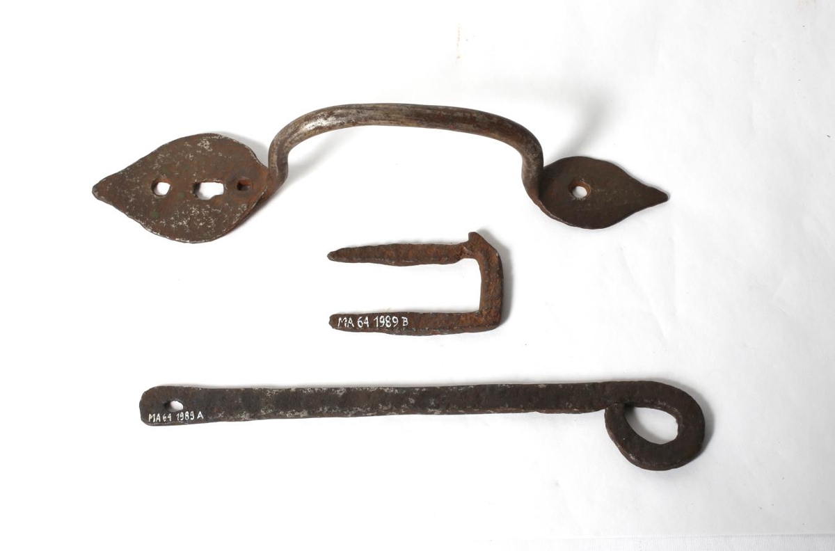 Heimasmíðuð. Notuð á hurð. Frá Giljum á Jökuldal. Var í bæjardyrum á gamla