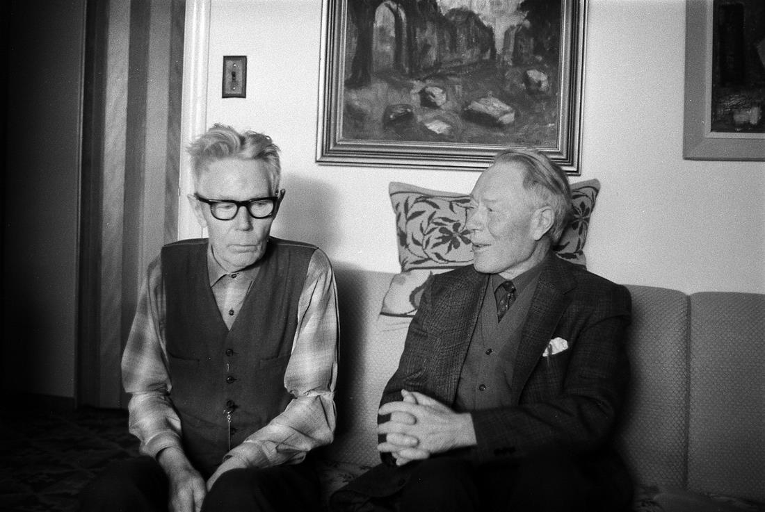 Þórbergur og Steinþór Þórðarsynir, okt. 1972. Bræður sitja í sófa.