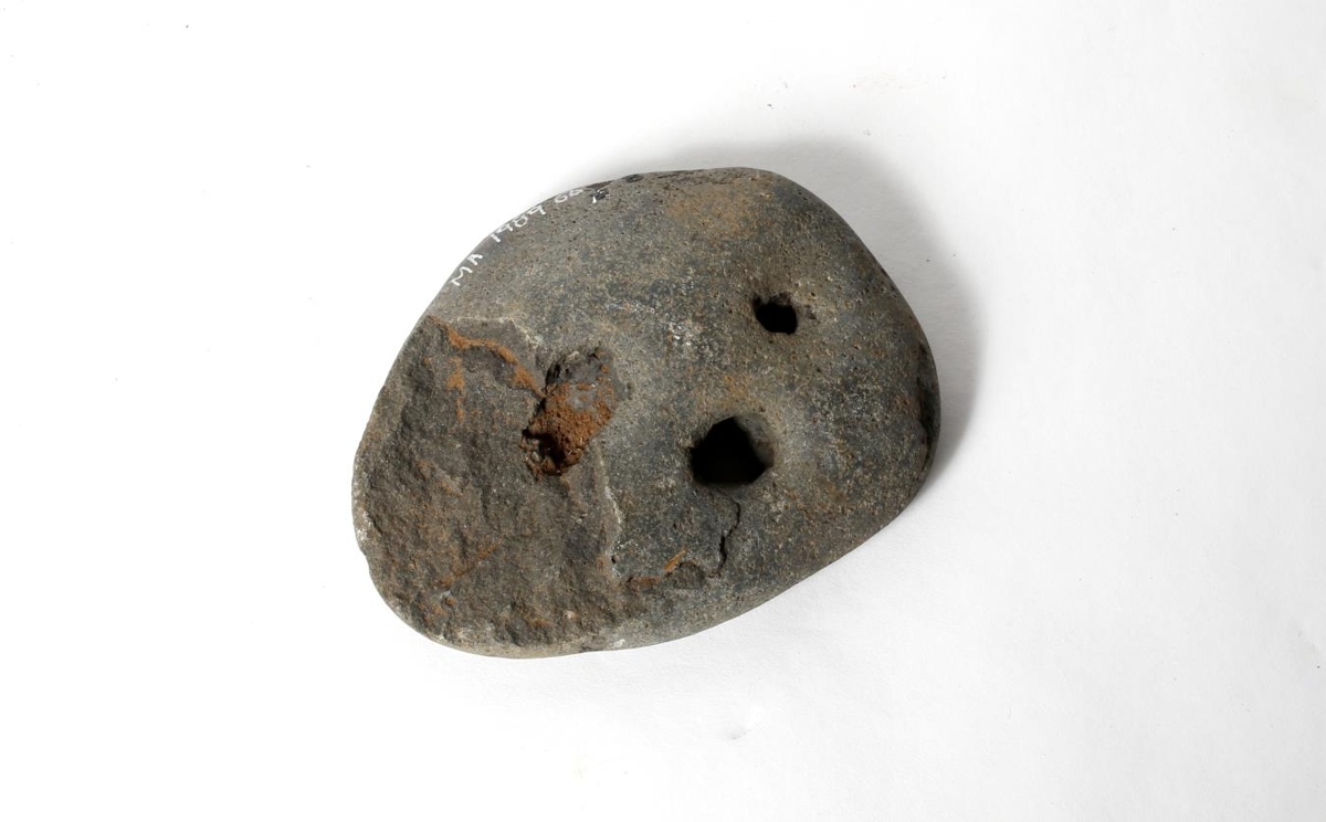 Fremur lítill og flatur, brotinn öðrum megin. Með tveimur götum í gegn, hlið við hlið. Í aðfangabók er talað um sex steina, þrjá af skellihurðum og þrjá líklega kljásteina. Fundust í rústunum á Giljum. Nú eru aðeins tveir sjáanlegir.