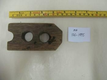 Viðarbútur með tveimur augum. Brennimerktur "J.O.H.S.". Gjöf frá Sveini og systkinum frá Eyrarlandi í Fljótsdal, Ingimarsbörnum. Langafi þeirra mun hafa átt og smíðað verkfærin en síðar eignaðist Jóhann Jónsson, afi þeirra verkfærin en hann var bóndi á Eyrarlandi.