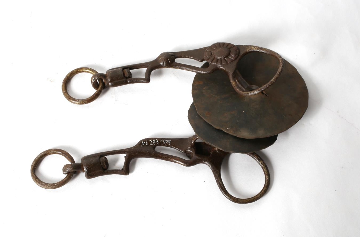 Beislisstangir með mélum og hlífðargúmmíum. Úr eigu Jóhanns S. Jónssonar frá Bessastöðum í Fljótsdal (f.24.08.1900).